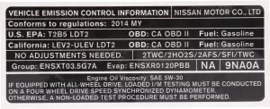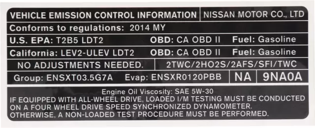 Emission Label - Nissan (14805-9NA0A)